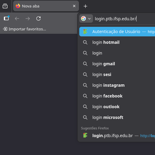 Caso não seja redirecionado, acesse o endereço login.ptb.ifsp.edu.br ou digite na barra de endereço: