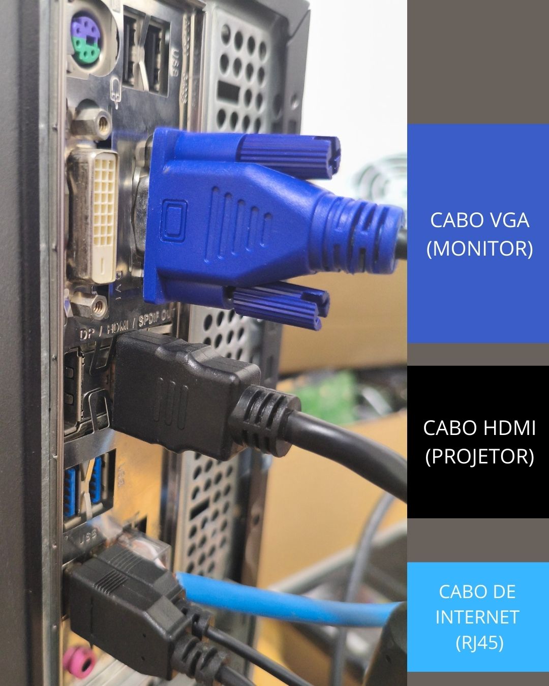 Confira se ambos os cabos do Monitor (VGA) e Projetor (HDMI) estão conectado a saída do computador.